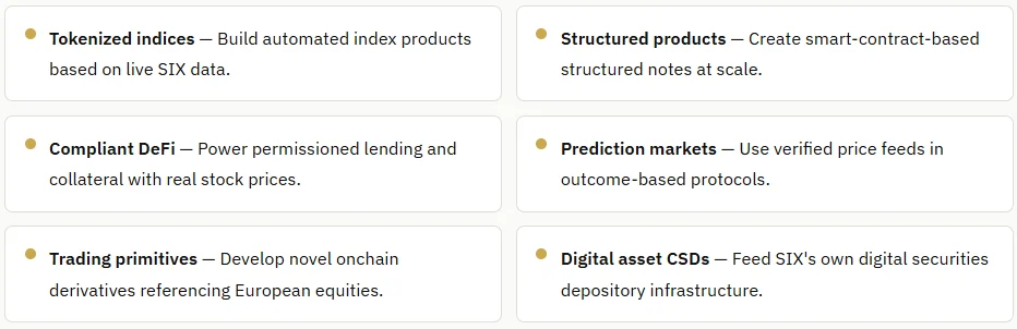 Real-time equity data onchain opens several categories of new applications. Here are the most significant ones enabled by this integration.