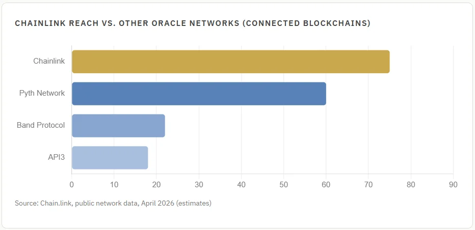 Data flows via Chainlink DataLink to 2,600+ applications across 75+ blockchains.