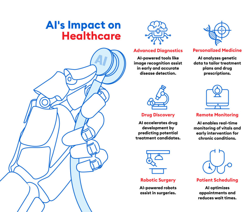 AI is revolutionizing the the medical sector by improving diagnostics, patient care, and operational efficiency. The integration of technologies like machine learning, natural language processing, and robotics is driving advancements in personalized medicine, remote patient monitoring, and telehealth. AI’s ability to analyze vast datasets, predict patient outcomes, and streamline administrative processes is crucial for improving patient care and reducing operational costs. Despite challenges like data privacy concerns, regulatory hurdles, high costs, and potential biases in AI algorithms, the benefits of AI in reducing costs and improving patient outcomes are undeniable. The COVID-19 pandemic has further highlighted the value of AI in handling public health emergencies, accelerating vaccine development, and enhancing telehealth services. The future of AI in the medical field holds great promise in drug discovery, predictive analytics, and personalized treatments.