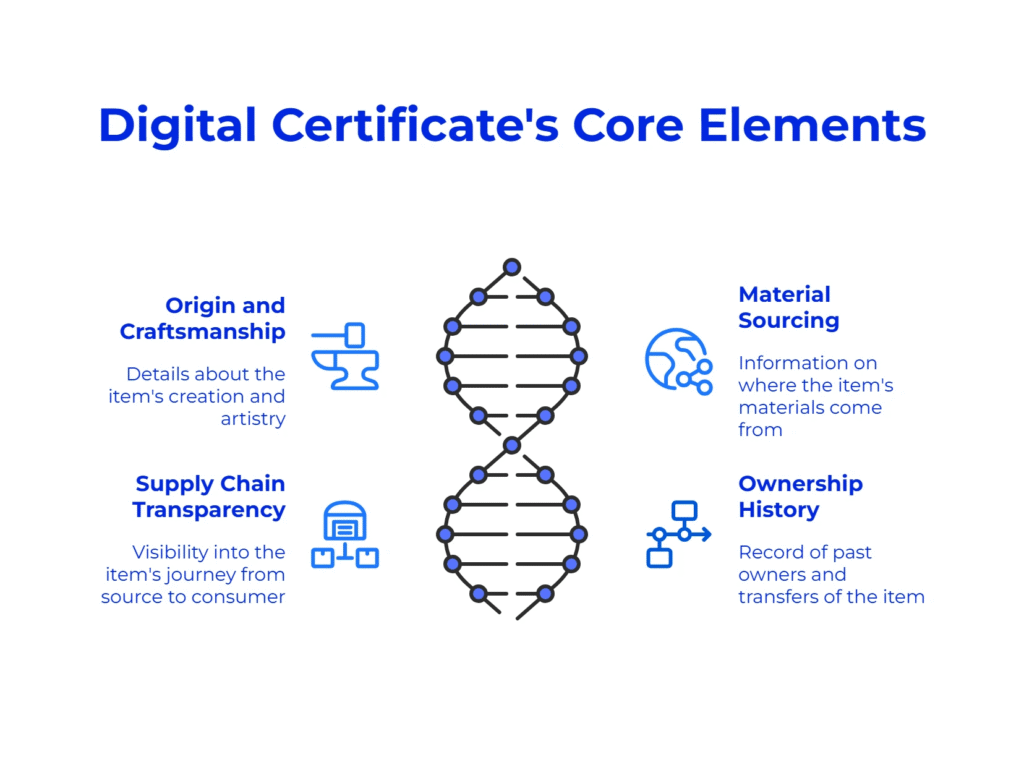 A blockchain-based digital certificate isn’t just proof of purchase. It stores: