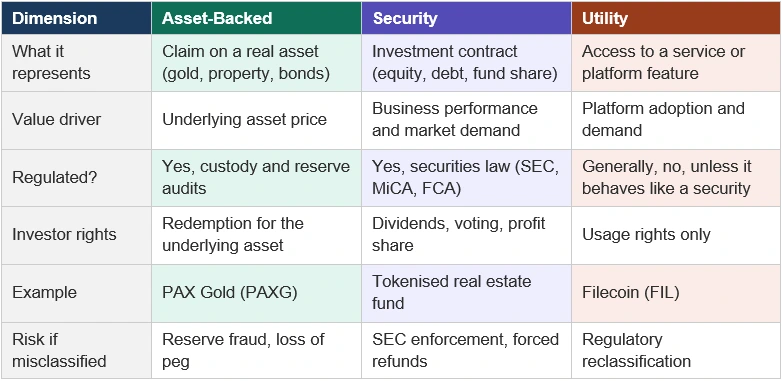 For investors, this means one simple rule: look at what the token does, not what the issuer calls it. A token labelled “utility” that promises returns from property rental income? That’s a security in disguise.