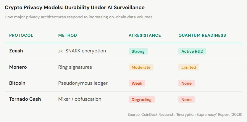 The thesis is straightforward. Obfuscation-based privacy weakens as data grows. Encryption-based privacy strengthens. Zcash is betting that mathematics will outperform heuristics. If AI surveillance accelerates, that bet becomes harder to ignore.