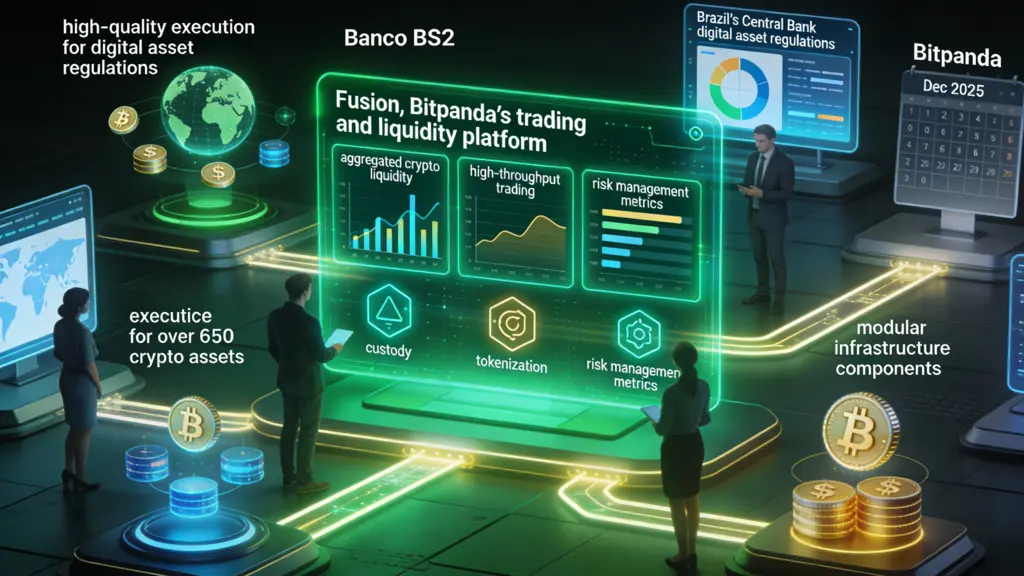 The agreement enables Banco BS2 to deploy Fusion, Bitpanda’s trading and liquidity platform, which aggregates liquidity from multiple venues and supports high-throughput trading, efficient execution, and risk management.