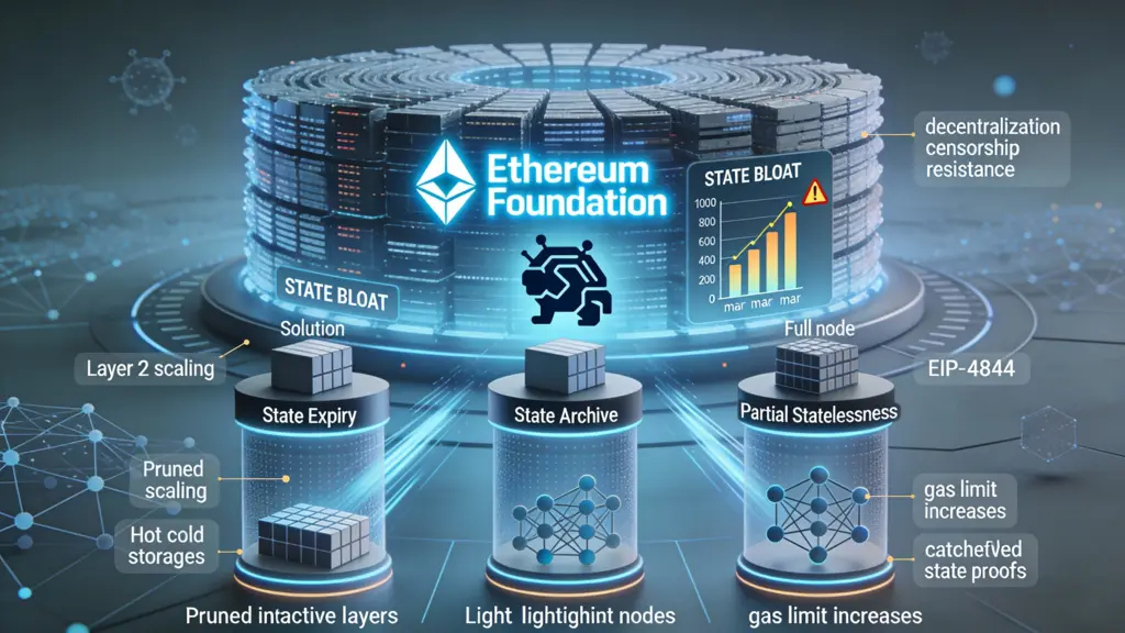 Catenaa, Friday, December 26, 2025- Ethereum Foundation researchers warned that growing “state bloat” would create storage and performance challenges for node operators.