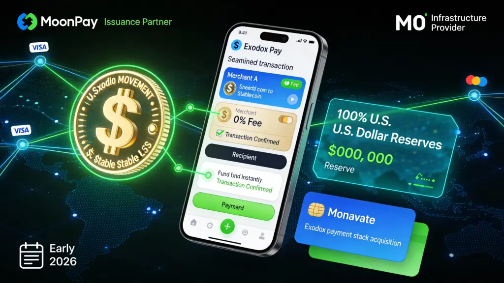 The new digital dollar will integrate with Exodus Pay, a planned payment feature on the Exodus app, allowing users to spend, manage, and earn rewards with stablecoins without requiring cryptocurrency knowledge.