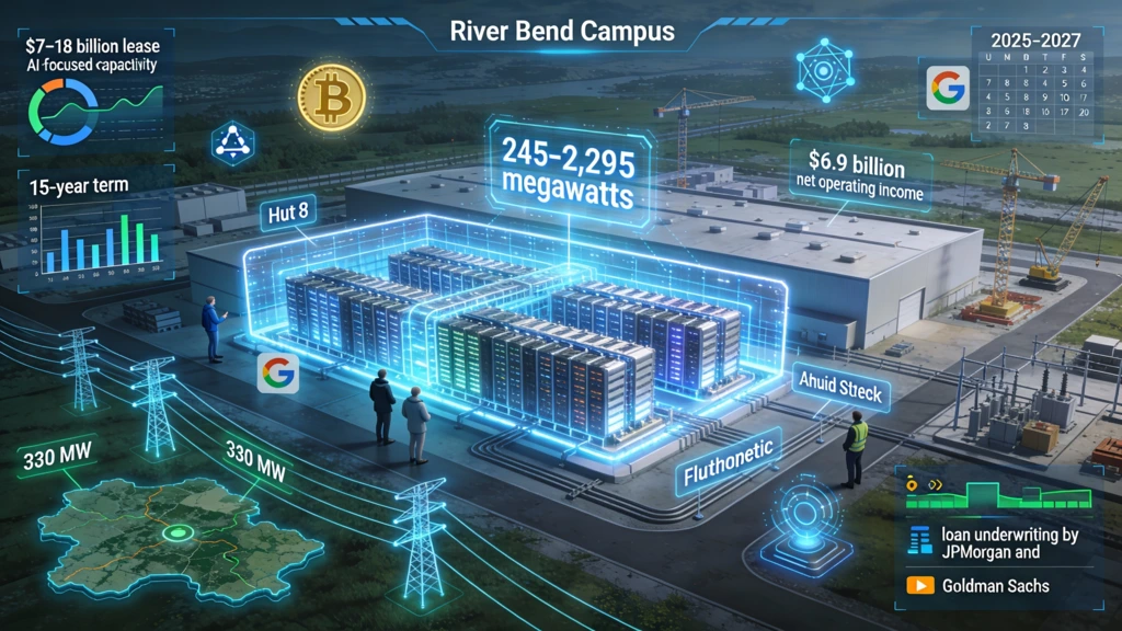 The first phase will be built at Hut 8’s River Bend campus in Louisiana, with an initial 245 megawatts of IT capacity supported by 330 megawatts of utility power.