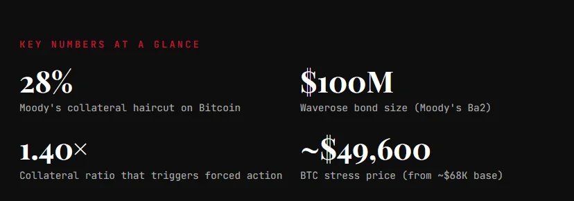 Moody’s valued Bitcoin at just 72 cents per dollar in the Waverose bond deal.