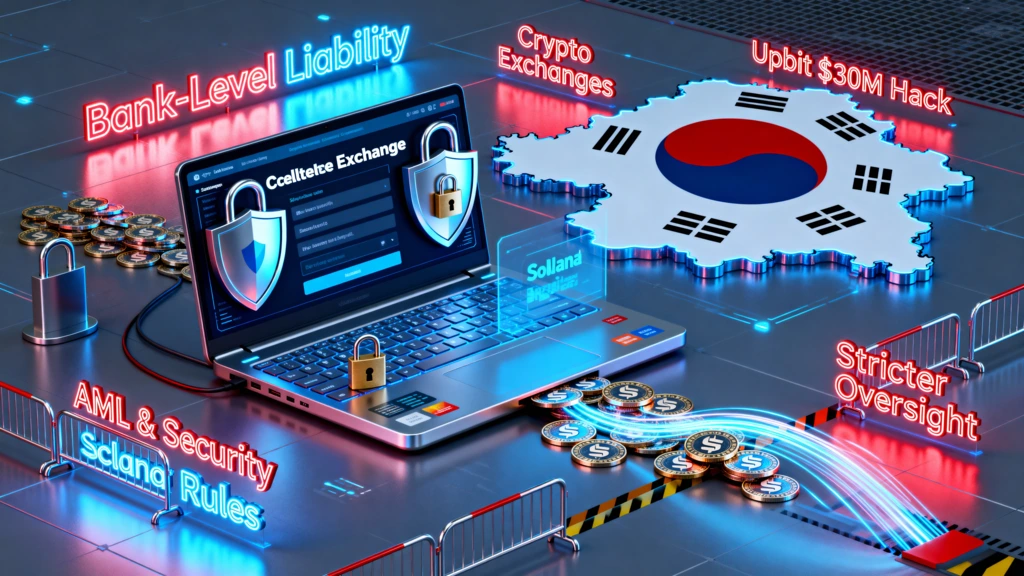 South Korea plans bank-level liability and stricter oversight for crypto exchanges after Upbit’s $30M hack, tightening security and AML rules.