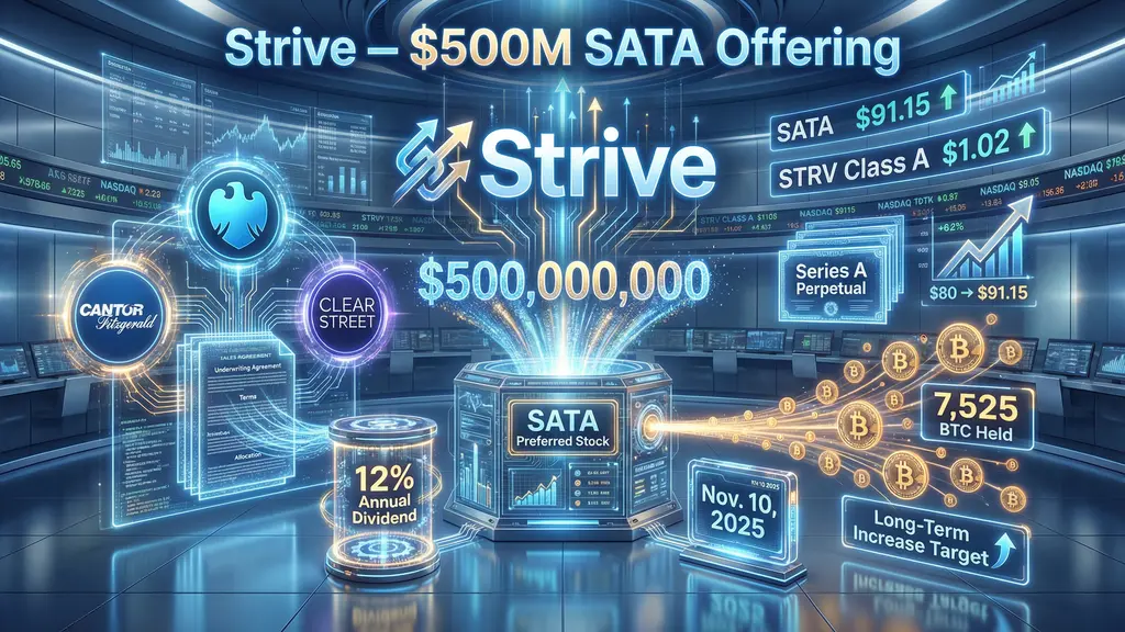 Catenaa, Tuesday, December 16, 2025- Strive launched a $500 million at the market offering for its Variable Rate Series A Perpetual Preferred Stock on Tuesday as the firm seeks added capital for its bitcoin treasury operations.