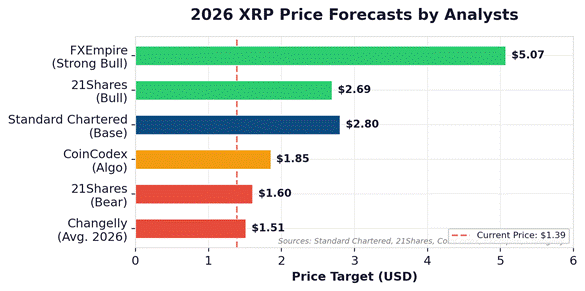 Figure 5: 2026 XRP Price Forecasts by Analysts (Sources: Standard Chartered, 21Shares, CoinCodex, FXEmpire, Changelly)