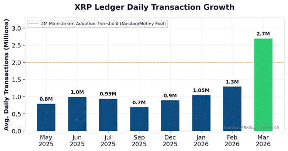 [8] The Crypto Basic, Daily XRP Payments Approach 3M https://thecryptobasic.com/2026/03/14/daily-xrp-payments-approach-3m-despite-price-struggles/