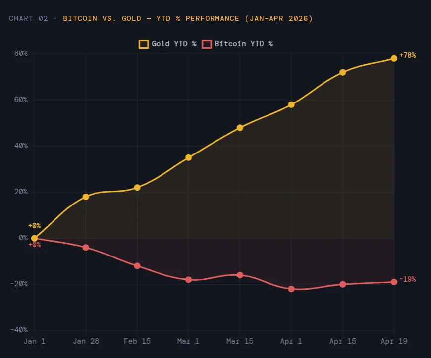 The market response to global uncertainty has been uneven. Gold and Bitcoin have diverged sharply in 2026. The data tells a clear story.