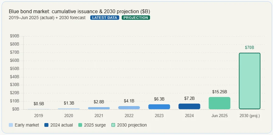 April 16, 2026 – Cumulative issuance hit $15.25B by June 2025. The market is projected to reach $70B by 2030. Clearer global standards are unlocking a new wave of capital for oceans and water.