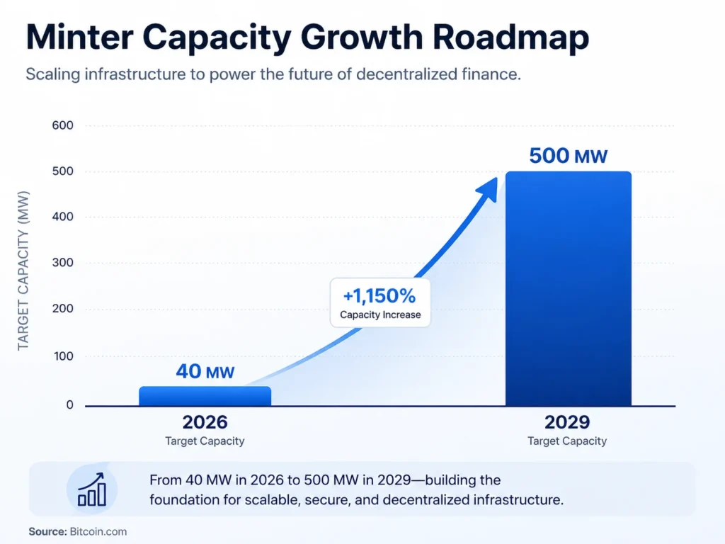 Minter currently serves one customer, according to Bitcoin.com. However, CEO Stefano Sergole expects the company to reach 40 MW of capacity this year. He also targets 500 MW by 2029 across Brazil and the United States.