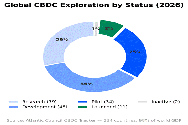 134 countries globally are now exploring CBDC projects.