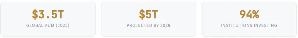 The global market has reached $3.5 trillion in AUM and is projected to hit $5 trillion by 2029 (Morgan Stanley).