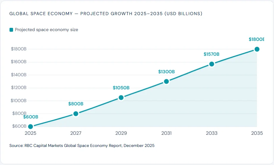 Beyond the litigation, the macro context is compelling. A December 2025 report by RBC projected the global space economy would triple in value. It could reach US$1.8 trillion within the next decade. Canadian opportunities alone could exceed $21 billion.