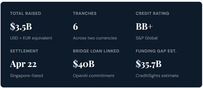 SoftBank raised ~$3.5B via six bond tranches across USD and EUR markets on April 16, 2026.