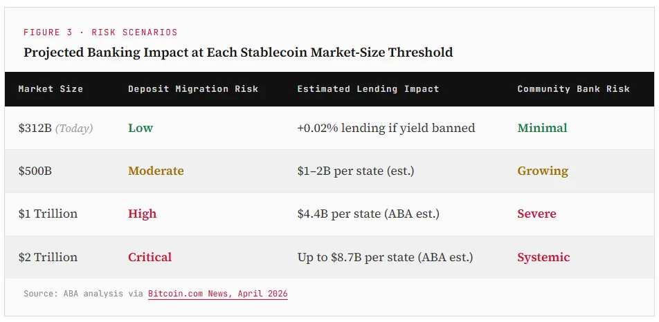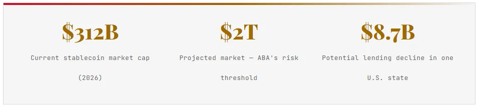 ABA estimates lending could fall by $4.4B–$8.7B in a single state as stablecoins scale.