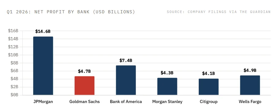 America’s biggest banks have just reported a blockbuster quarter. JPMorgan, Goldman Sachs, Morgan Stanley, Bank of America, Citi, and Wells Fargo collectively earned $47.4 billion in Q1 2026. That figure rivals the strongest quarters in Wall Street history.
