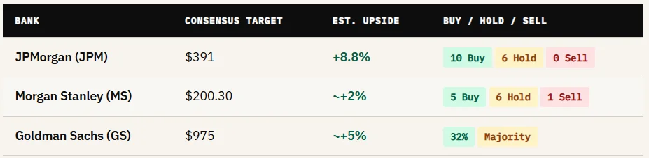 For active investors, the data suggests a selective opportunity. JPMorgan has the strongest analyst consensus. Bank of America raised its full-year NII growth guidance. Wells Fargo’s productivity gains are measurable. But the picture is not uniformly bullish.